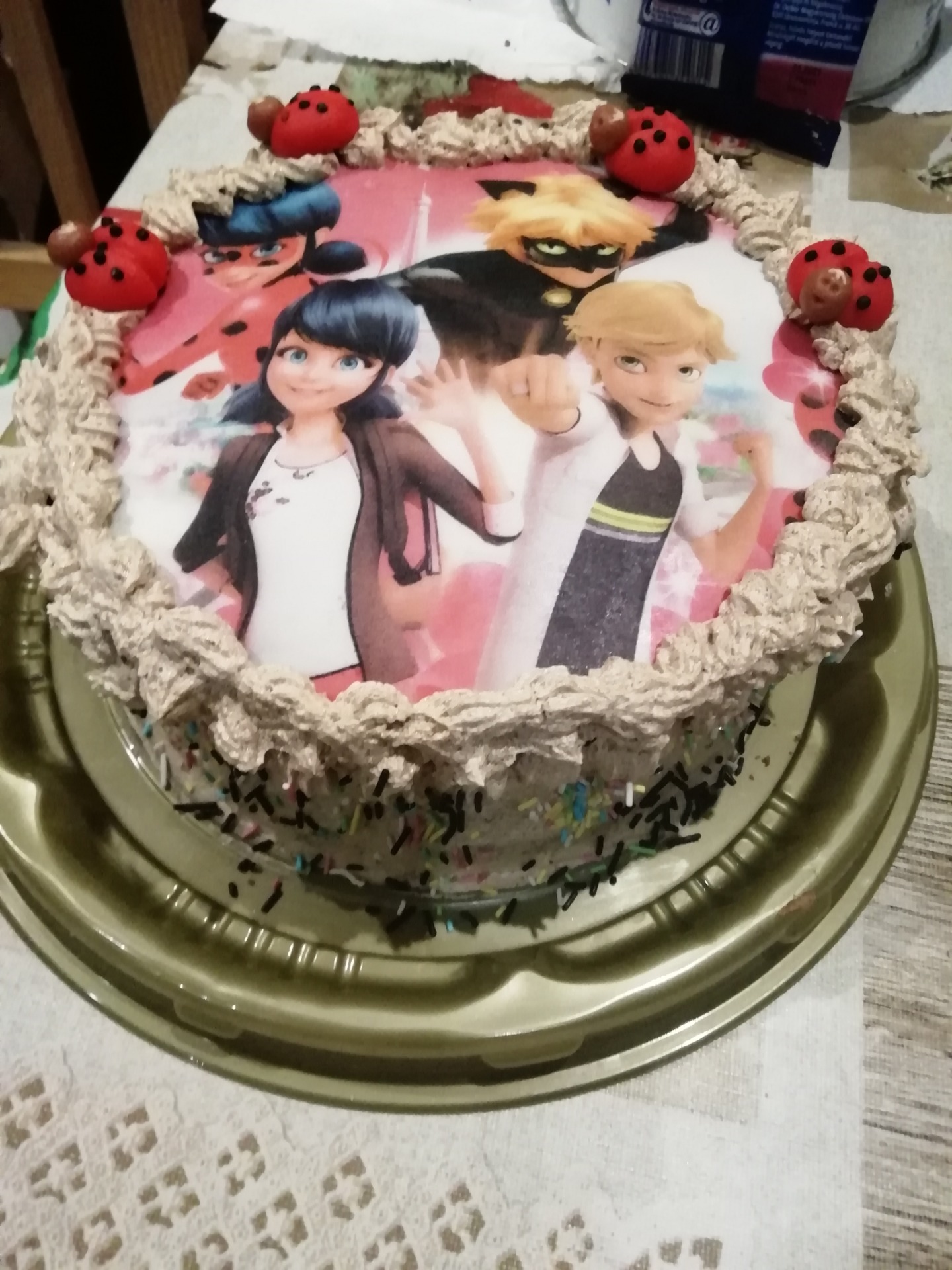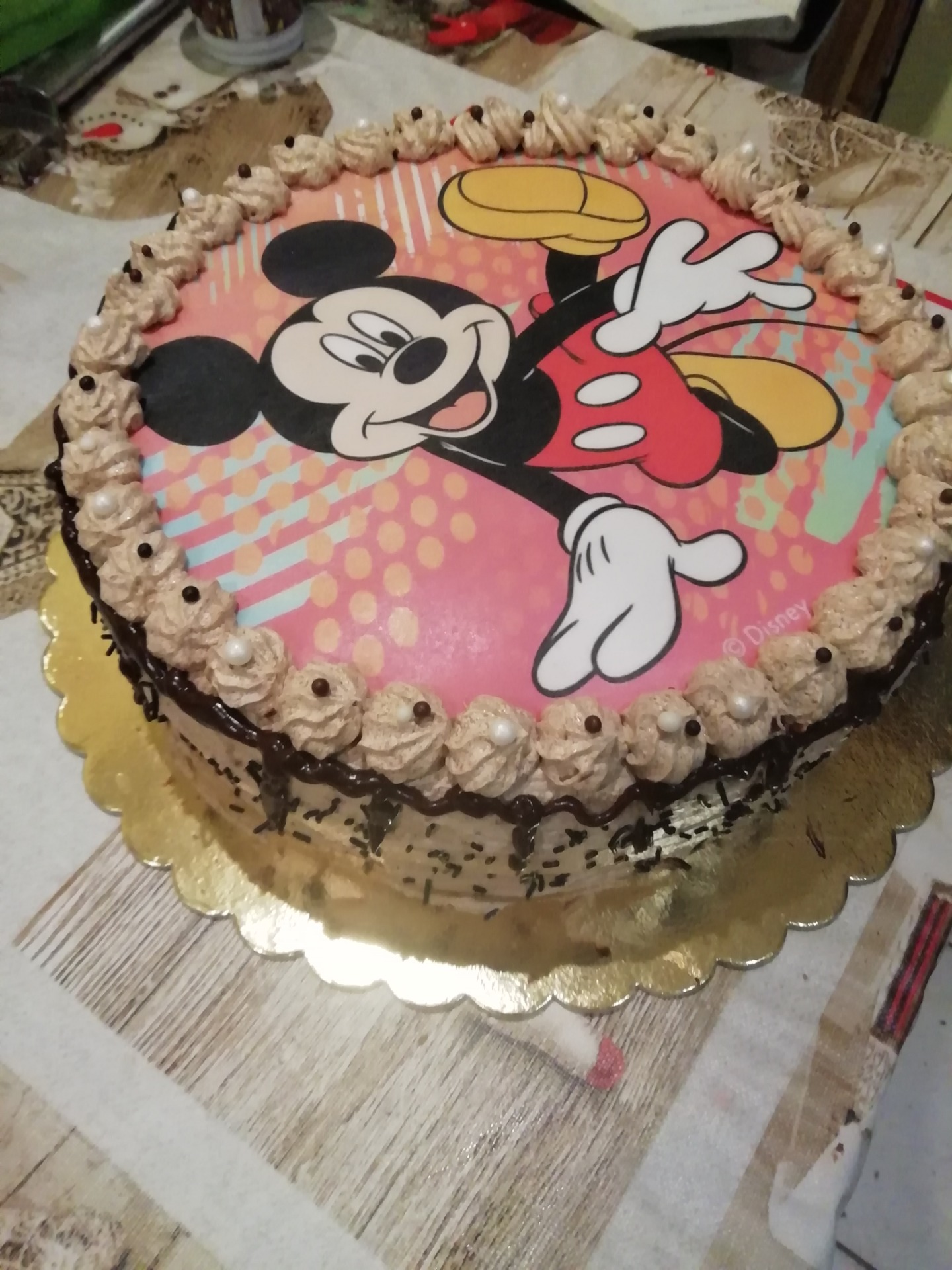 - Ha a krém megszilárdult, a 3 részre vágott tortakarikákat megtöltjük, kívül is bekenjük a krémmel, majd ugyanezzel a krémmel díszítjük.