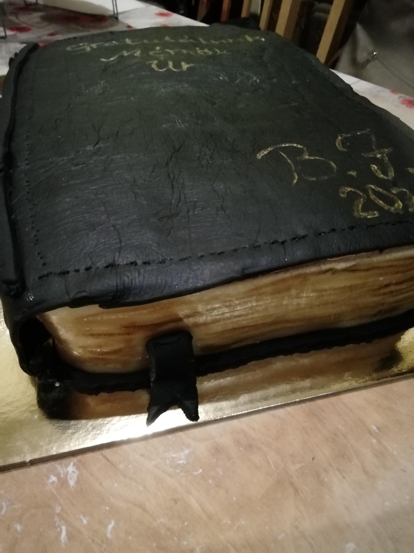 Ezt a kis bőrkötésű naplót alig 2-3 hete készítettem (2020. március elején) felkérésre. Elsőre kicsit megijedtem a feladattól, könyv formájú tortát még eddig nem csináltam. Félve álltam neki és ahogy egyre alakult, készült-szépült úgy alakult át a félelem örömmé...eufórikus öröm,hogy igen ezt megcsináltam...teljesen örültem mikor készen lett, olyan kis cuki és élethű lett :)