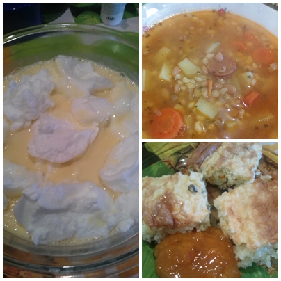 Szombati menü:kolbászos bableves, rizskokh (riszfelfújt), madártej