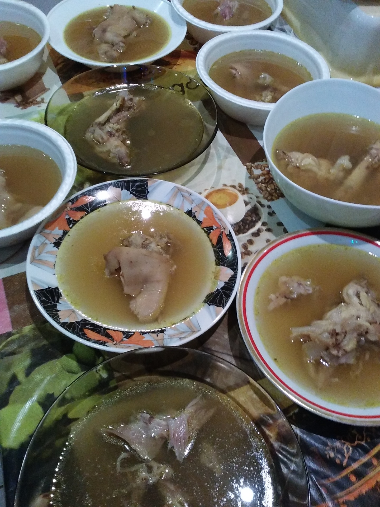Csütrötöki menü: húsleves (pulykanyakból és egy kis csirke aprólékból) sok zöldséggel, csigatésztával, készül még gyros fűszeres sült csirkecomb, petrezselymes krumplival
